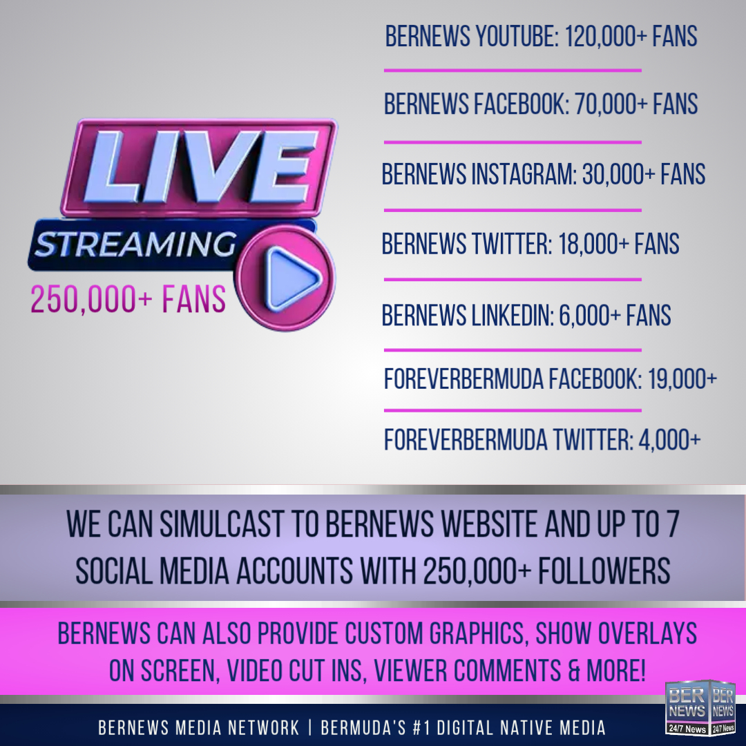 Sponsoring Bernews’ coverage gives your business the opportunity to gain exposure and goodwill across our various websites and 300,000 social media followers, with our coverage including live streaming, photo galleries, aerial footage, 360 degree panoramas, custom graphics, video; with all branding remaining online for years to come. Email [email protected] to learn more.